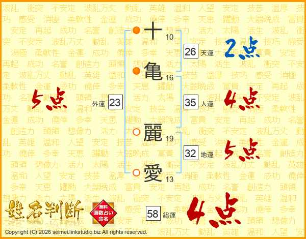 十亀麗愛さんの天運は26画の2点!
