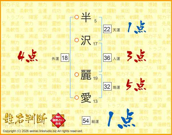 半(5画)沢(17画) 麗(19画)愛(13画)