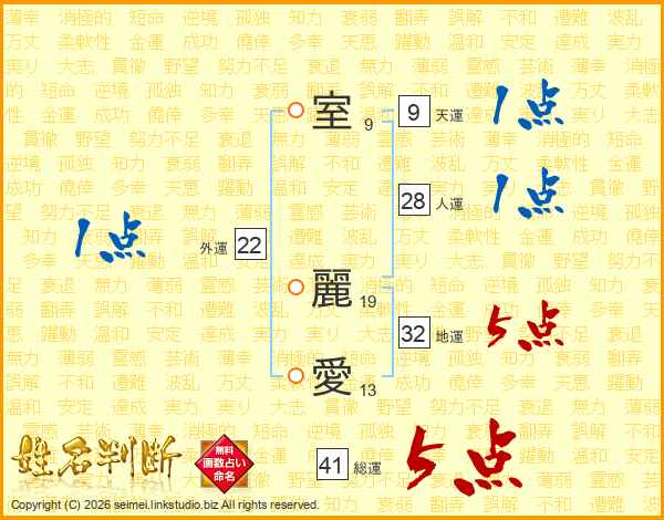 室(9画) 麗(19画)愛(13画)