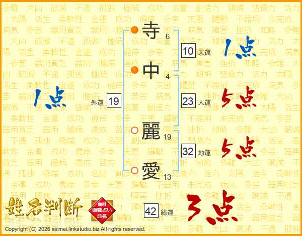 寺(6画)中(4画) 麗(19画)愛(13画)
