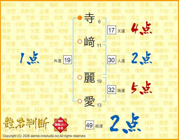 寺﨑麗愛さんの総運は49画の2点!