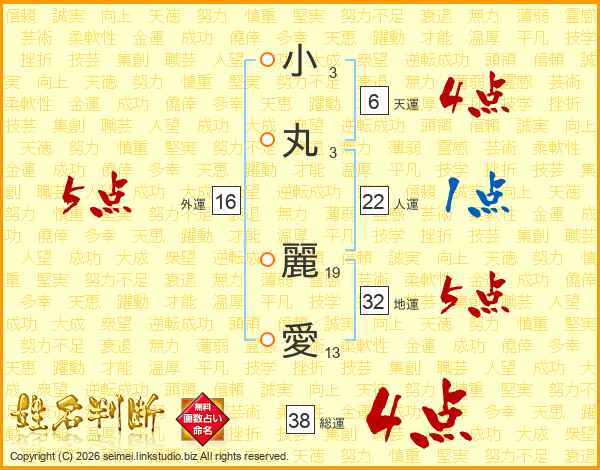小丸麗愛さんの総運は38画の4点!