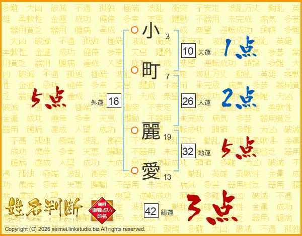 小町麗愛さんの総運は42画の3点!