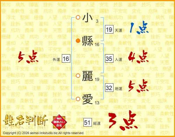 小縣麗愛さんの総運は51画の3点!
