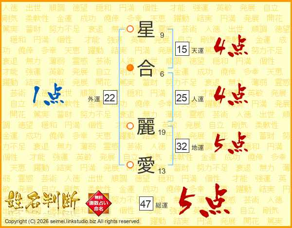 星合麗愛さんの総運は47画の5点!