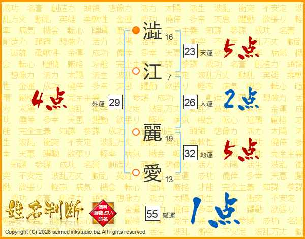 澁(16画)江(7画) 麗(19画)愛(13画)