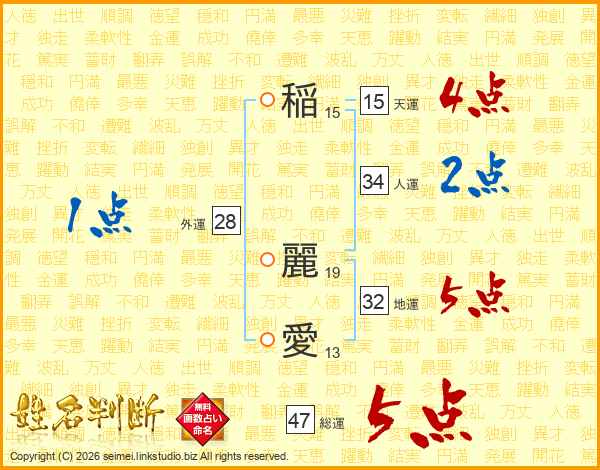稲麗愛さんの総運は47画の5点!