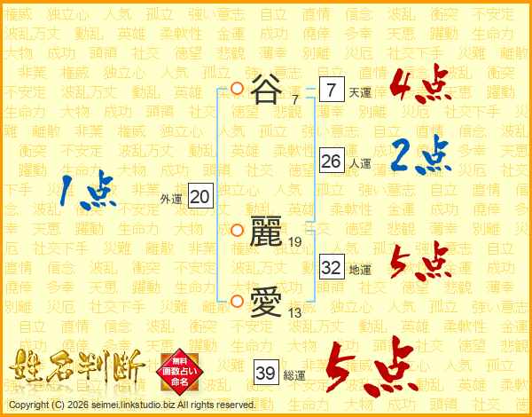 谷(7画) 麗(19画)愛(13画)