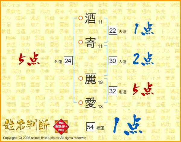 酒寄麗愛さんの総運は54画の1点!