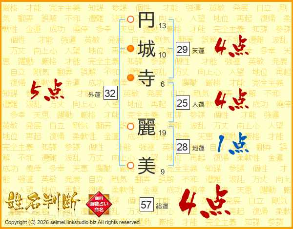 円城寺麗美さんの総運は57画の4点!