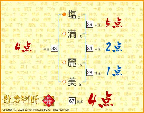 塩(24画)満(15画) 麗(19画)美(9画)