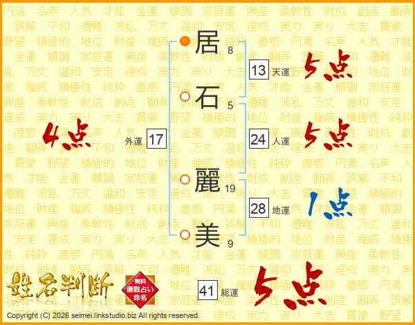 居石麗美さんの総運は41画の5点!