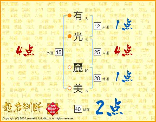 有光麗美さんの総運は40画の2点!