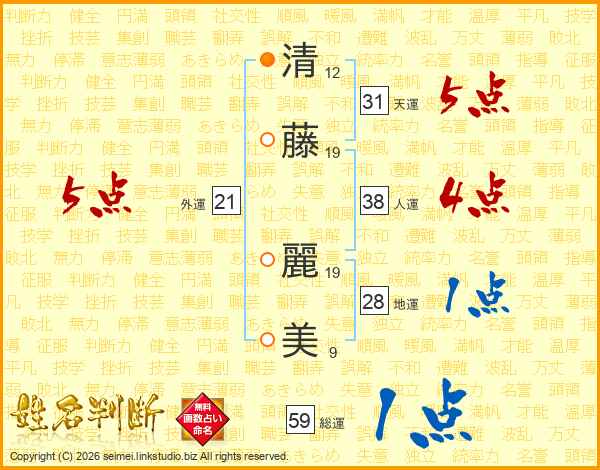 清(12画)藤(19画) 麗(19画)美(9画)
