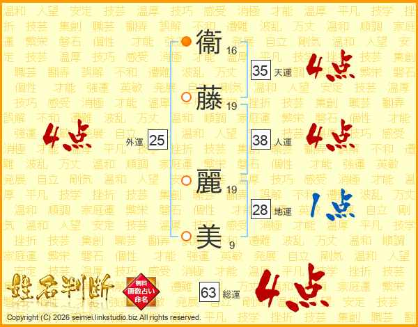 衞藤麗美さんの総運は63画の4点!