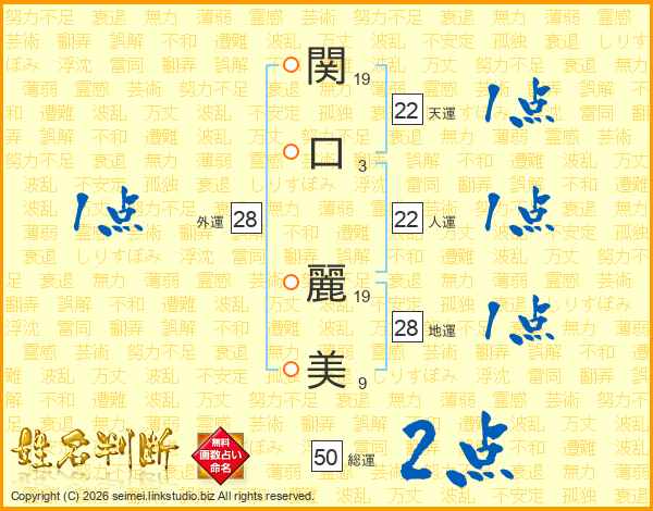 関口麗美さんの人運は22画の1点!