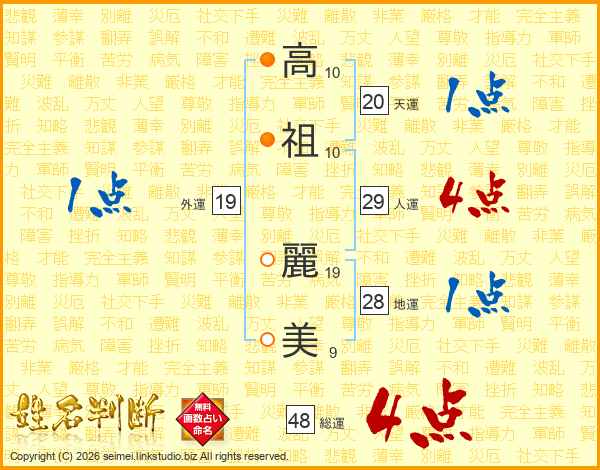 高(10画)祖(10画) 麗(19画)美(9画)