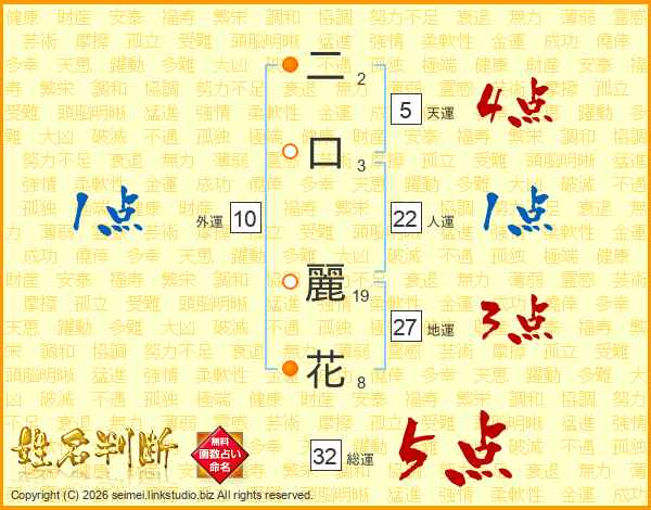 二口麗花さんの総運は32画の5点!