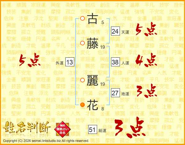 古藤麗花さんの外運は13画の5点!