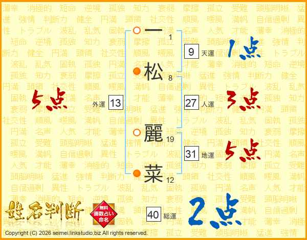 一(1画)松(8画) 麗(19画)菜(12画)