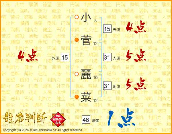 小菅麗菜さんの総運は46画の1点!