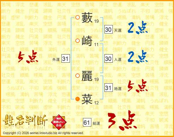 藪崎麗菜さんの地運は31画の5点!
