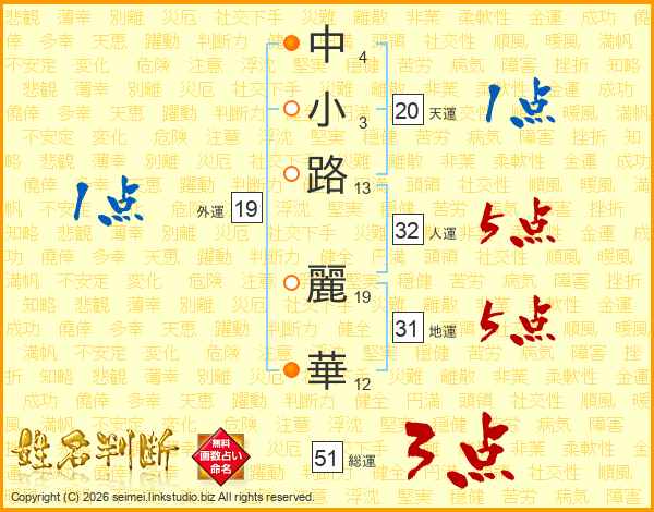 中小路麗華さんの地運は31画の5点!