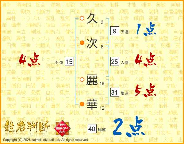久次麗華さんの総運は40画の2点!