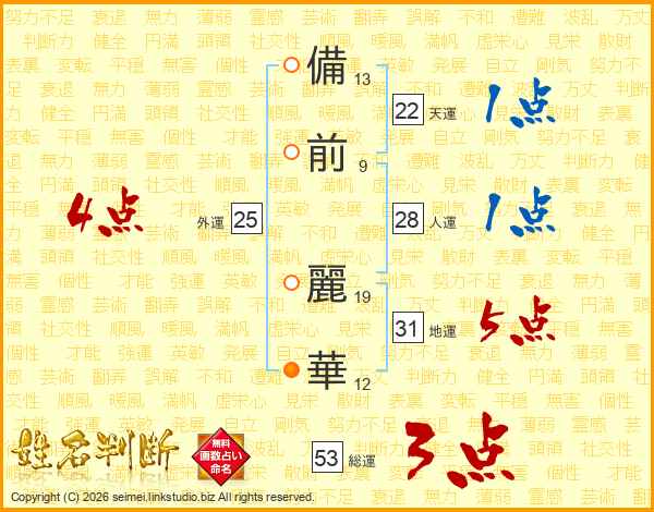 備(13画)前(9画) 麗(19画)華(12画)