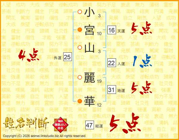 小宮山麗華さんの総運は47画の5点!