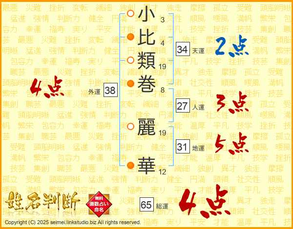 小比類巻麗華さんの総運は65画の4点!