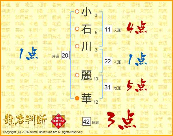 小(3画)石(5画)川(3画) 麗(19画)華(12画)