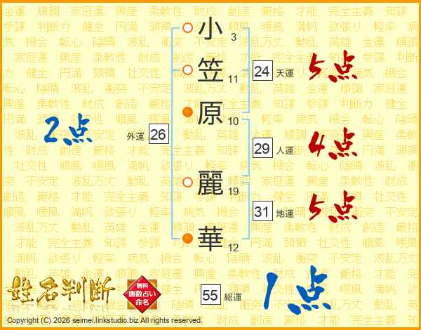 小笠原麗華さんの地運は31画の5点!