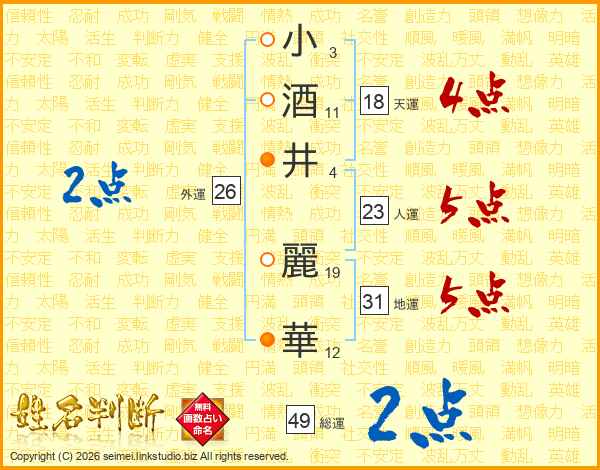 小酒井麗華さんの総運は49画の2点!