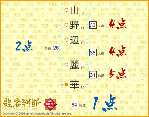 山野辺麗華さんの天運は33画の4点!