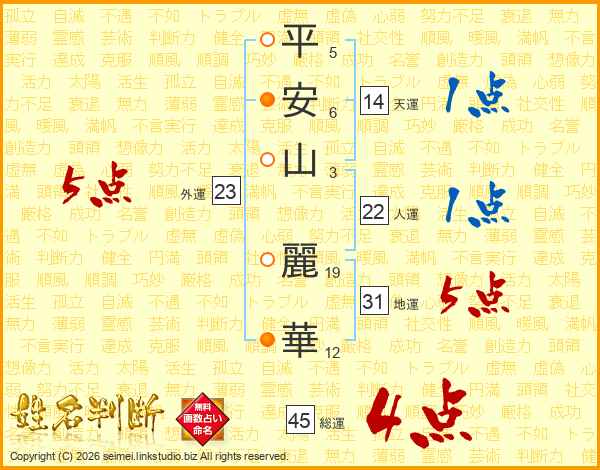 平安山麗華さんの総運は45画の4点!