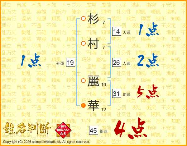 杉(7画)村(7画) 麗(19画)華(12画)