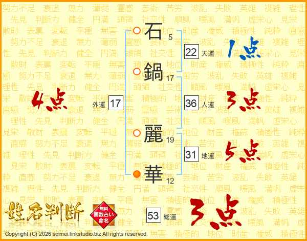 石鍋麗華さんの総運は53画の3点!