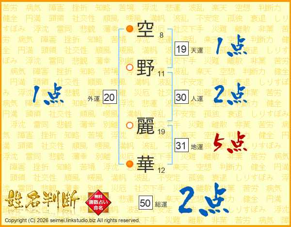 空野麗華さんの総運は50画の2点!