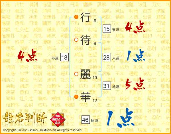 行待麗華さんの外運は18画の4点!