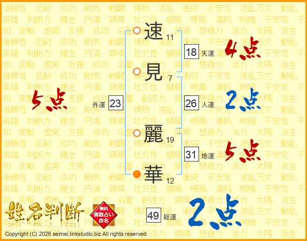 速(11画)見(7画) 麗(19画)華(12画)