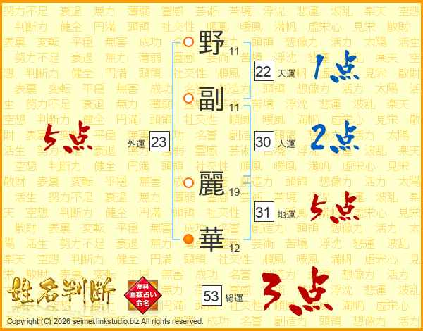 野副麗華さんの総運は53画の3点!