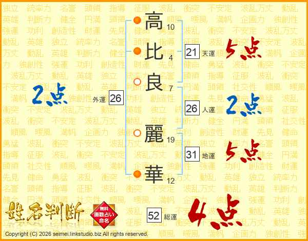 高(10画)比(4画)良(7画) 麗(19画)華(12画)