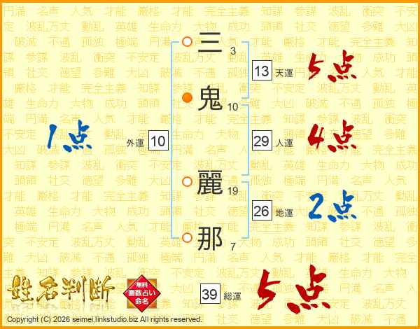 三(3画)鬼(10画) 麗(19画)那(7画)
