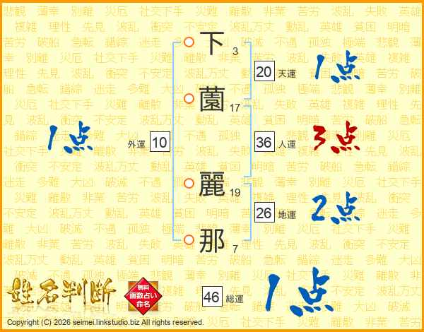 下薗麗那さんの総運は46画の1点!