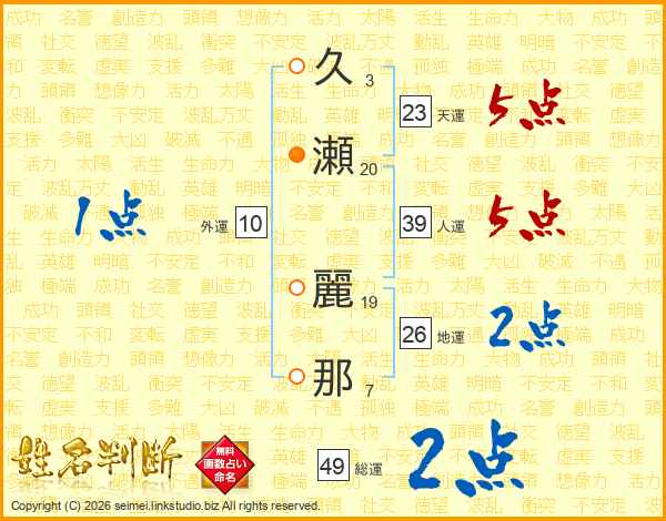 久瀬麗那さんの天運は23画の5点!