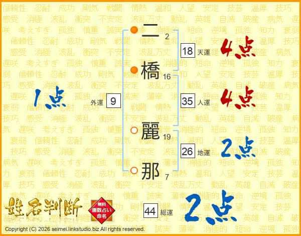 二橋麗那さんの総運は44画の2点!