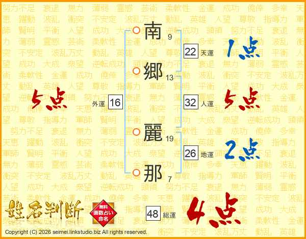 南郷麗那さんの総運は48画の4点!