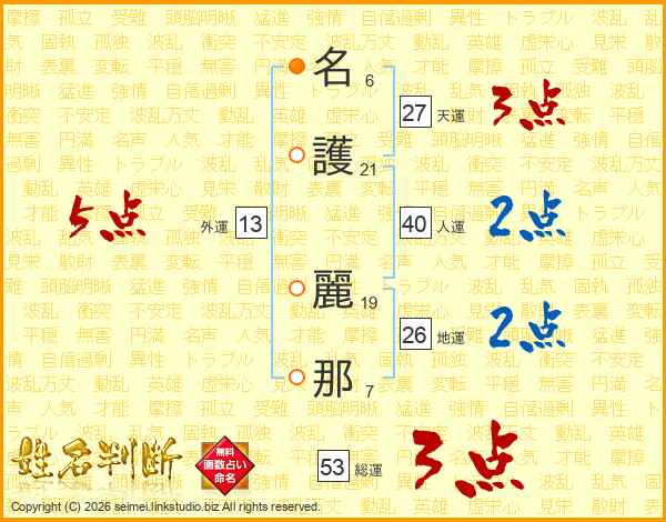 名護麗那さんの総運は53画の3点!