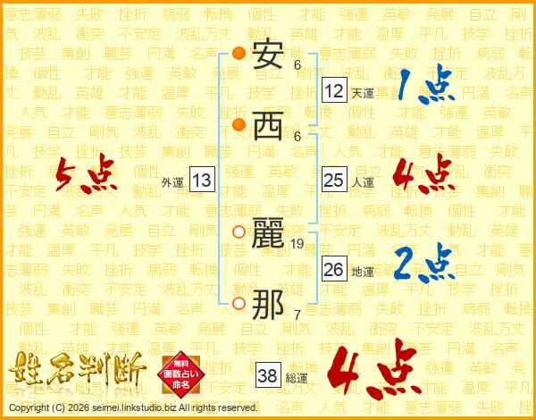安西麗那さんの総運は38画の4点!